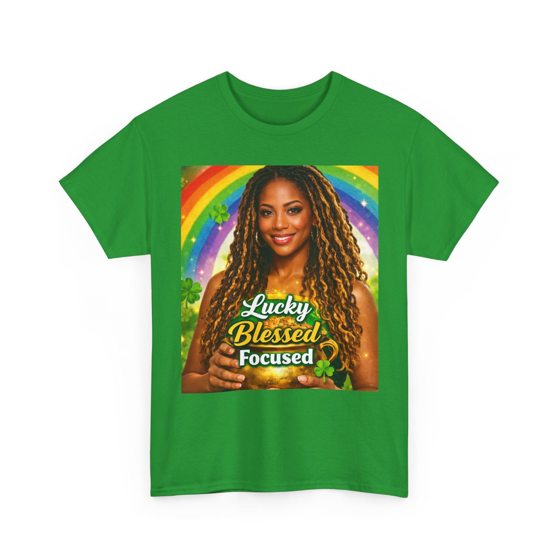 Lucky Blessed Focused T-Shirt | Rainbow Shamrocks St. Patrick's Day